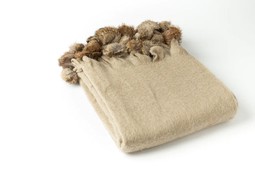 Wool blend Mohair Pom Pom Throw